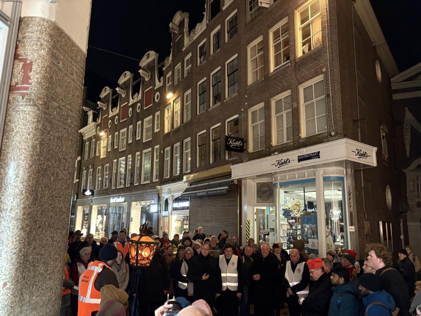 Na de mis liepen de gelovigen uit het aartsdiocees in diverse groepen de drukke Warmoesstraat in om hun Stille Omgang te doen. Kardinaal Eijk en zijn twee hulpbisschoppen liepen met de rozenkrans in de hand voorop.