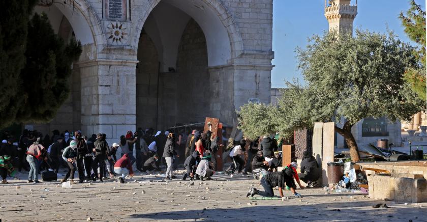 Jeruzalem, 15 april 2022 - Bij botsingen tussen Palestijnse demonstranten en de Israëlische oproerpolitie op de Tempelberg in Oost-Jeruzalem zijn agenten vandaag de Al-Aqsa-moskee binnengedrongen en hebben in dat heiligdom aanhoudingen verricht, meldt de Israëlische krant Haaretz. Het kwam na het ochtendgebed tot op de Tempelberg, een plek die door zowel de joden als de moslims als heilig wordt beschouwd.