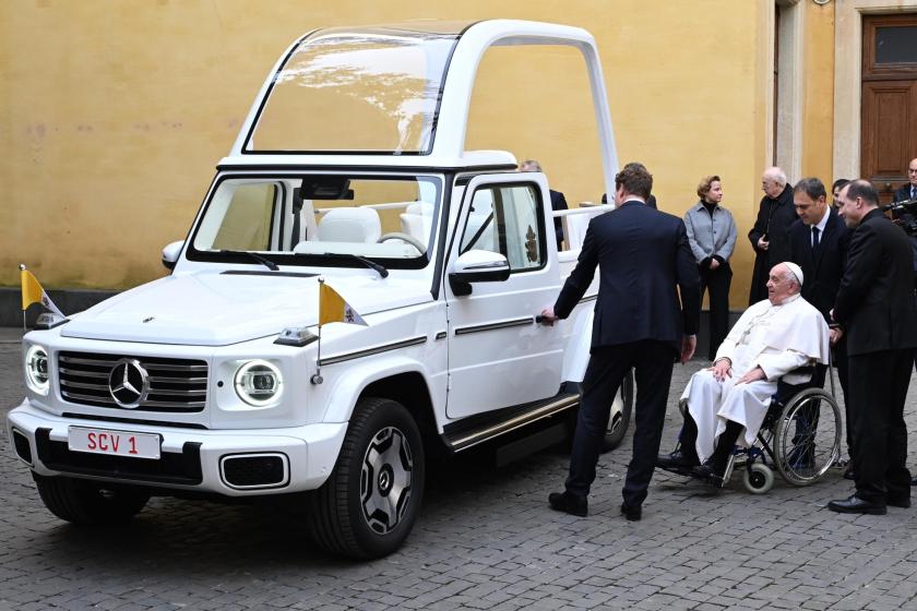 Rome, 4 december 2024 – De Duitse autofabrikant Mercedes-Benz heeft vandaag de paus een volledig elektrische terreinwagen geschonken. De nieuwe pausmobiel is een witte SUV uit de G-klasse, die “in nauwe samenwerking met het Vaticaan” werd ontworpen.
