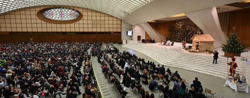 Vóór de algemene audiëntie vandaag ontving de pontifex de artiesten die morgenavond optreden voor het jaarlijkse kerstconcert van het Vaticaan. Het concert, dat plaatsvindt in de Paulus VI Hal, wordt op kerstavond uitgezonden op de Italiaanse zender Canale 5.