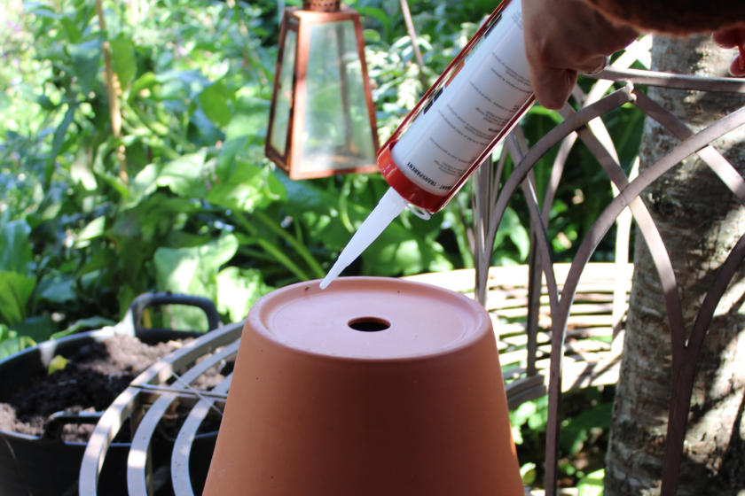 - Stap 1: Draai de pot om en doe een laagje siliconenkit op de onderkant van de pot