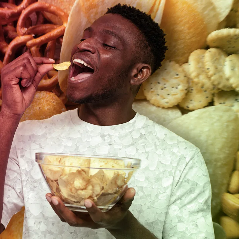 Je krijgt dus meer zout binnen dan je denkt. Dat komt met name doordat er steeds meer natrium in ons eten verwerkt zit. Ongeveer tachtig procent van het zout dat we dagelijks eten, komt uit voorverpakte producten waar het zout al in de fabriek is toegevoegd. Dat is dus een hoop natrium dat wordt toegevoegd aan ons voedsel.