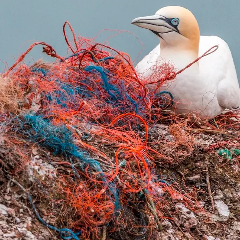 Een half tot één miljard kilo aan vistuig dus. Dan hebben we het over lijnen, netten en ander vismateriaal. Deze vervuiling wordt ook wel ‘spookvistuig’ genoemd. Dit is ook gelijk de schadelijkste vorm van plastic afval voor zeedieren. Dit komt dan voornamelijk door verstikking in spooknetten of kleine stukjes plastic wat ze binnenkrijgen. In de stille oceaan is 46% van het totaal aan plastic in het water dit soort netten.