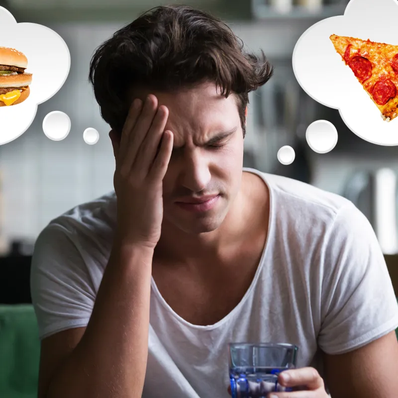 Het is duidelijk hoe je aan die kater komt, maar hoe kom je er weer vanaf? Nou, in ieder geval niet door vet eten. Je maag is al compleet van slag door de drank en het eten van een vette hap gaat dit waarschijnlijk alleen nog maar erger maken.