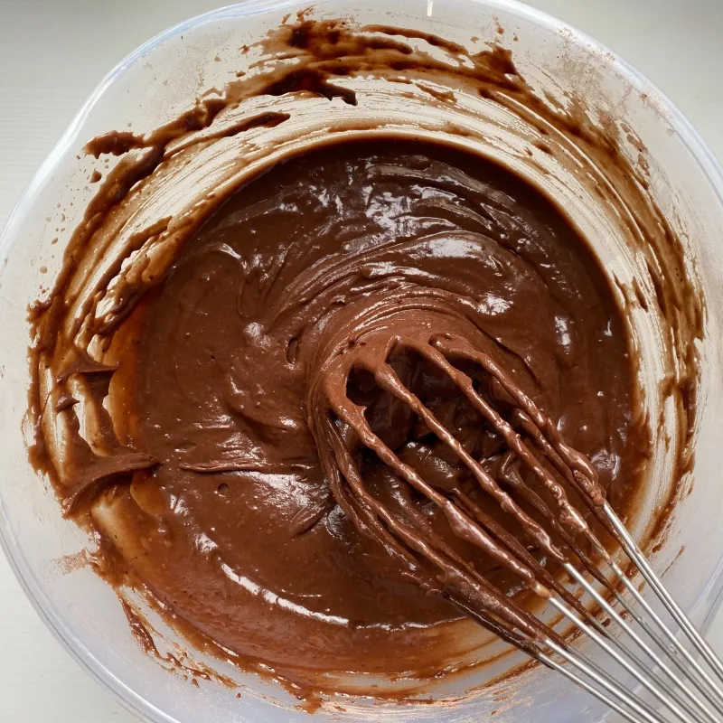 - Meng tot een geheel. Tijdens het mengen voeg je telkens wat van de olie toe tot dat het een smeuïge substantie is geworden.