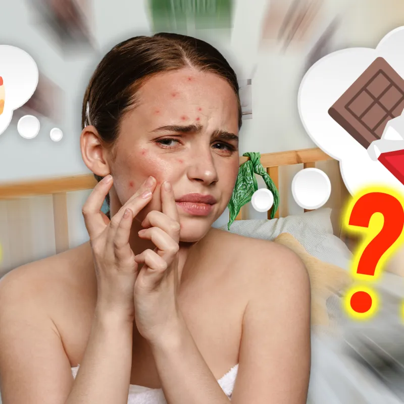 Chocolade, een patatje met mayo, dat stuk taart op een verjaardag: er lijkt een hele lijst te zijn van dingen die je niet moet eten om een zuivere huid te houden. Maar wat is er van waar? Waar krijg je pukkels van?