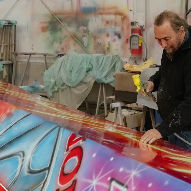“In de eerste helft van mijn carrière airbrushte ik ook veel vrachtwagens. Dat was leuk omdat mensen daarmee dan vervolgens allerlei prijzen wonnen, zoals de Mooiste Truck van Nederlandverkiezing van Truckstar Festival. Ook stonden door mij geairbrushte vrachtwagens vaak in vrachtwagenmagazines vanwege hun bijzondere uiterlijk. Tegenwoordig worden alle vrachtwagens geleased en mogen ze dus niet meer zomaar versierd worden. Hierdoor spuit ik eigenlijk alleen nog maar kermisattracties.”