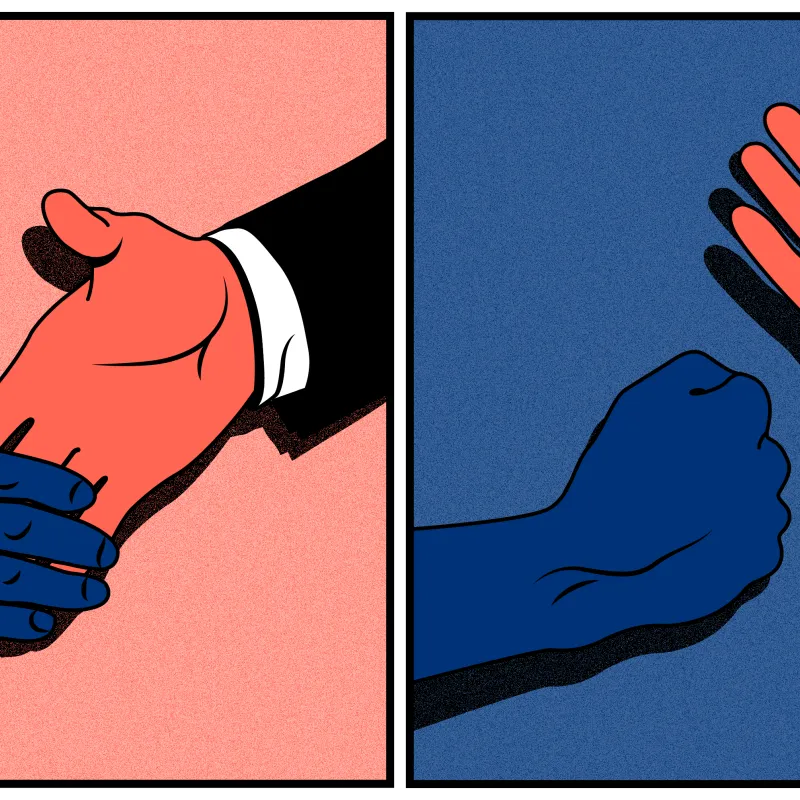 Op Twitter schelden we elkaar de huid vol, op straat lopen we met een steeds grotere boog om elkaar heen. En als we al in gesprek gaan, praten we langs elkaar heen. Rechtslinks, goedfout, wijzij, AjaxFeyenoord, wellesnietes. Elke zet een herhaling, elk gesprek een discussie. De uitkomst staat van te voren vast, want met je kop fier in het zand is het lastig luisteren.