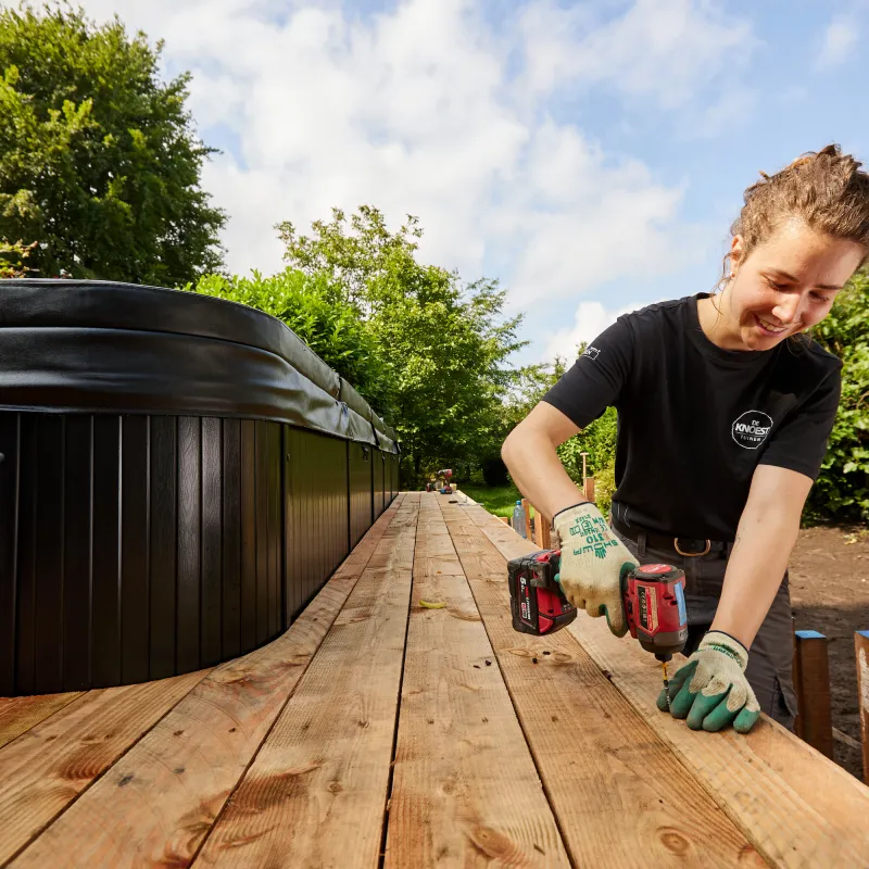 In Tilburg bleek er een hoveniersbedrijf te zijn dat meerdere vrouwen in dienst heeft en daarom informeerde ze daar naar een baan. "Na een week meelopen, tekende ik al mijn contract", zegt ze enthousiast. "Op mijn eerste werkdag bouwden we een vlonder en dat vond ik meteen echt vet. Ik denk bij dit soort werk nog steeds weleens aan Karl Marx en zijn principe over voldoening." Volgens Marx kunnen mensen alleen voldoening in werk ervaren als zij zichzelf terugzien in de objecten of diensten die zij creëren.