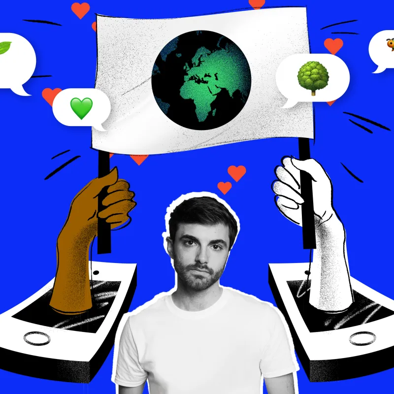 “Dat een beter milieu bij jezelf begint is de grootste leugen die er bestaat. Het is dé neoliberale leugen. Dat is niet de manier om de wereld te veranderen: het is een manier om de status quo intact te houden. Deze slogan van de overheid verwijst ernaar dat je je vooral moet focussen op consumentenkeuzes. Maar als mensen alleen maar bezig zijn met labeltjes vergelijken op producten schiet het niet op. Een beter milieu bereik je niet door in je eentje alternatieve producten te kopen, maar door met schouder aan schouder om grootschalige maatschappelijke verandering te vragen.”