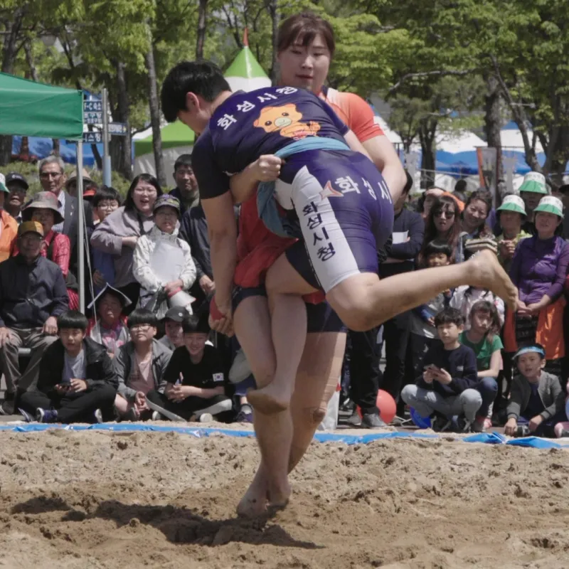 Denk je aan ZuidKorea, dan denk je aan de nieuwste smartphones, wolkenkrabbers, BTS en kdrama’s – niet aan een eeuwenoude volkssport waarbij brede vrouwen elkaar innig en homoerotisch omarmen en worstelend aan elkaars broek hijsen om de ander in het zand te krijgen.