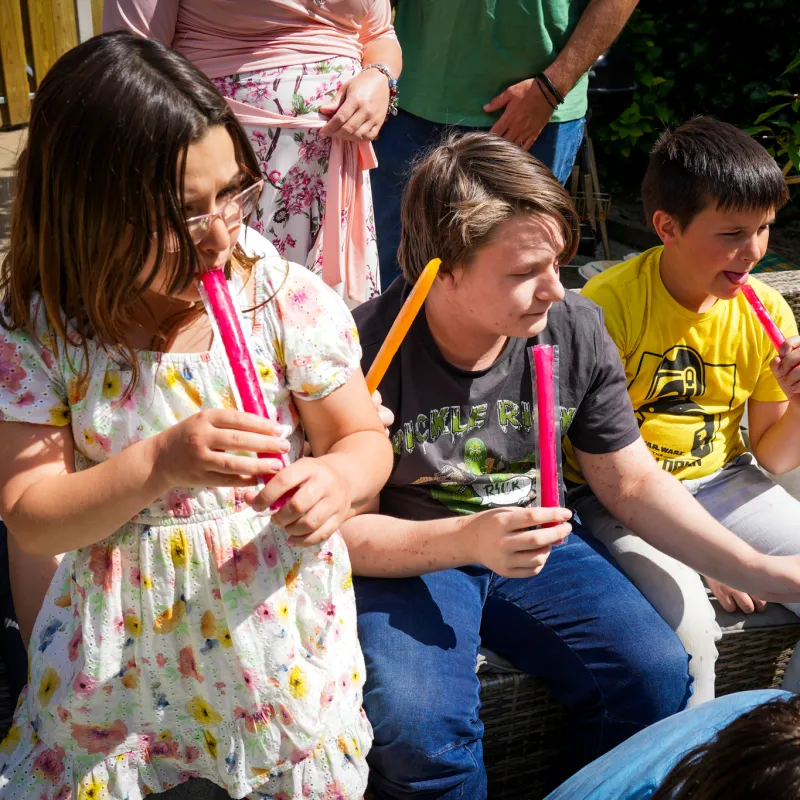 Lukas: ‘Het belangrijkste met die warmte is dat je voldoende vocht binnenkrijgt. We zetten vaak grote kannen limonade in de koelkast en daarna op tafel. De kinderen pakken het dan gewoon zelf. Het kost niet zoveel en ze vinden het lekker.’