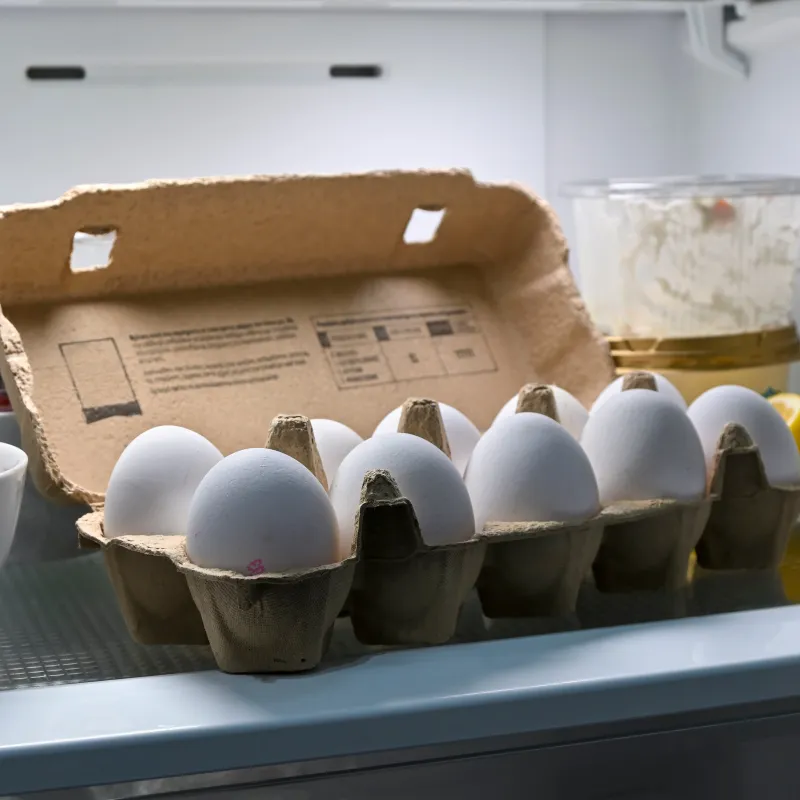 Het is ook verstandig de eieren in het kartonnen doosje te laten. Dit voorkomt dat geuren van ander voedsel de eischaal binnendringen en de smaak veranderen. Bovendien voorkomt het doosje uitdroging, waardoor eieren langer goed blijven.