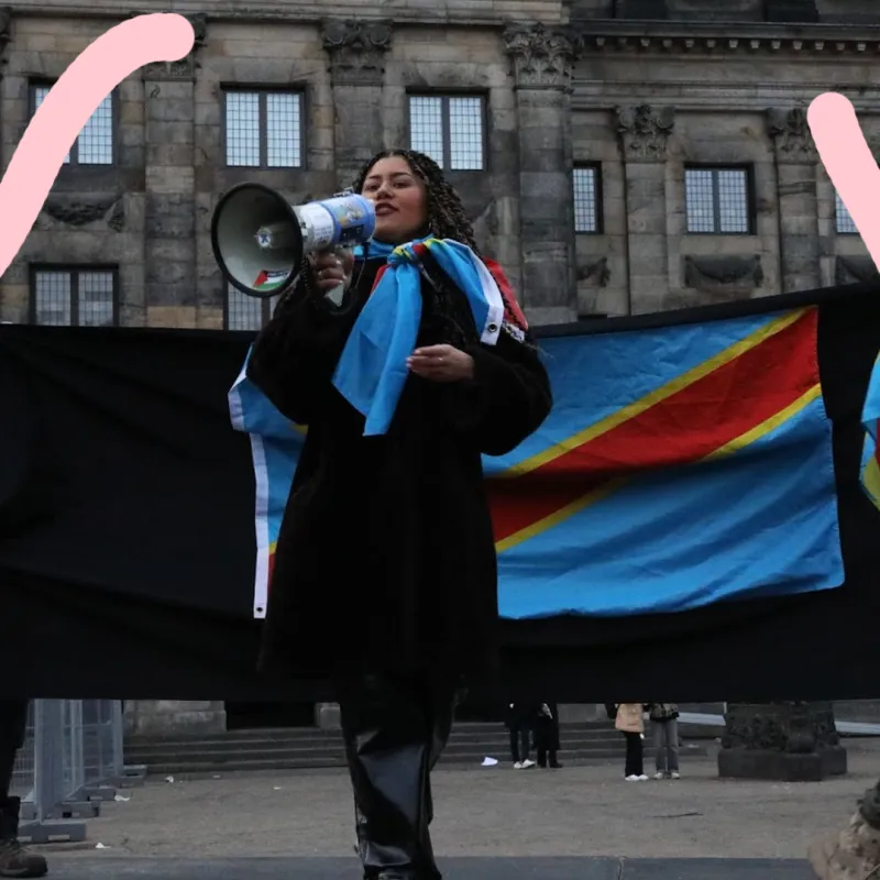 In januari werd de eerste Free Congo March georganiseerd in Amsterdam. Donna was er bij en sprak tijdens de demonstratie namens Congolese vrouwen. “Ik dacht wel even mag ik wel over dit leed praten als ik het zelf niet heb meegemaakt? Maar ik spreek mij altijd uit over elke humane crisis waar ik iets van weet, dus ik dacht ook wel ik moet mijn stem hiervoor gebruiken.” “Toen ik terugkwam van de eerste demonstratie heb ik drie uur lang bijna verlamd in bed gelegen. Er kwam zoveel emotie en intergenerationeel trauma, trauma dat van generatie op generatie wordt doorgegeven, naar boven. Ik heb daardoor ook wel meer empathie gekregen voor mijn vader en ik begrijp nu beter waarom hij dat altijd wilde wegstoppen. Maar ik wil zelf niet degene zijn die mijn Congolese identiteit uitwist. Het is tragisch dat het op deze manier gebeurt, maar ik voel mij nu wel dichter bij Congo.”