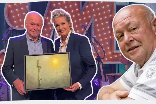 Ad Bos, die in 2001 de misstanden in de bouw aankaartte, wil de journalistiek graag bedanken. "Ik heb het niet alleen gedaan, ik deed het samen." Na de uitzending van M overhandigde hij een schilderij aan Margriet en de hele journalistiek. Lees hieronder het verhaal.