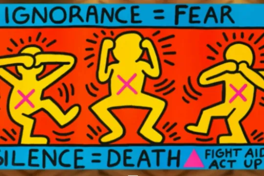 "SARS, de Mexicaanse griep, Ebola… Ik dacht ook meteen terug aan AIDS dat ons in de jaren '80 in de greep hield, mijn eigen tienerjaren. Dat brengt mij bij mijn jeugdheld, de activistische popheld Keith Haring. Hij liet mannetjes zien met de handen voor de ogen, handen voor de oren en monden." Symbool voor de ellende niet willen zien. "In die tijd waren er mensen die dachten dat je AIDS kon krijgen van elkaar de hand schudden of van een wc-bril. We waren panisch van angst. Hij roept ons op: 'Fight against AIDS', we gaan ten strijde. Dat doen we nu ook allemaal. Elke dag proberen we allemaal om iets te doen."